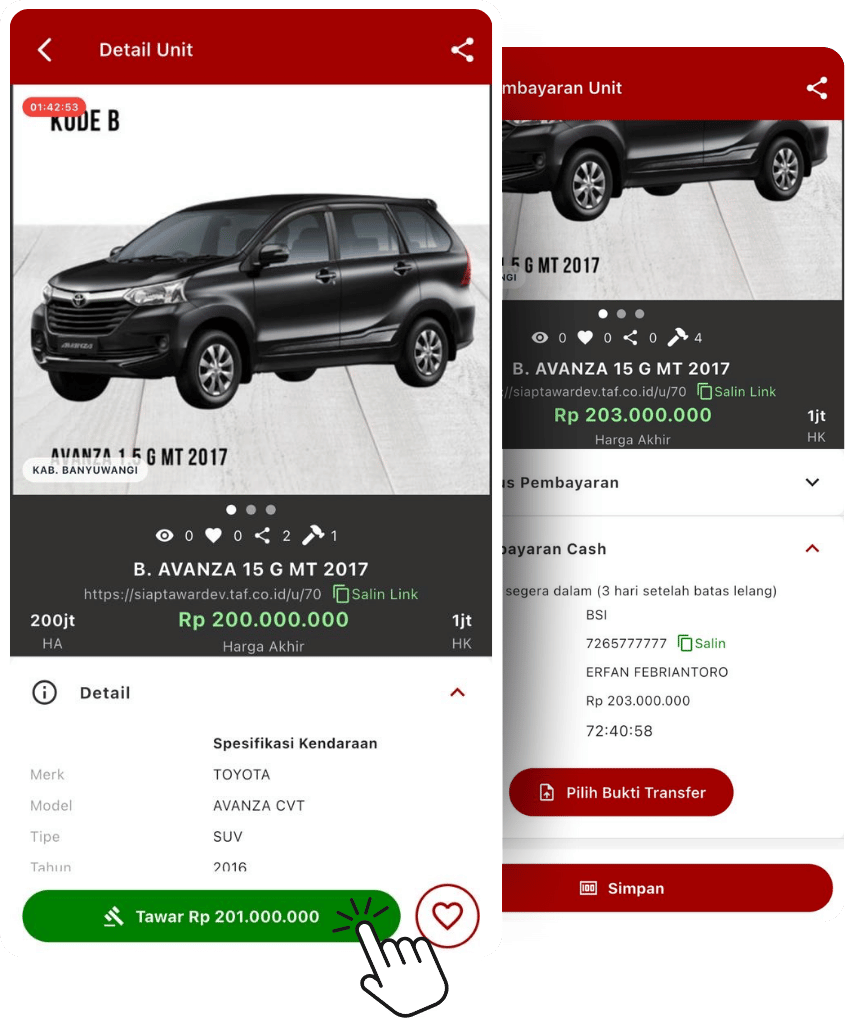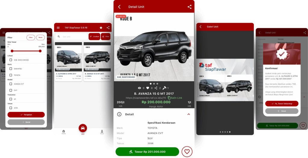 Melalui aplikasi ini, Anda bisa mengakses berbagai unit mobil Toyota pilihan dari seluruh Indonesia, dan melakukan penawaran secara real-time, transparan, aman, dan efisien.